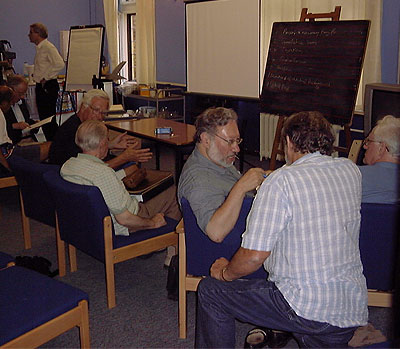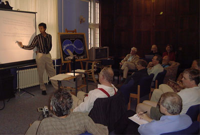 The Pelastration approach has been presented to the ANPA Group during the ANPA Conference 2004 in Cambridge (UK). There were about 15 speakers. Also the private talks with Lou Kaufmann, Pierre Noyes (Stanford) and James Lindesay (Stanford) were very interesting. Below you find some photo's of the event. I gave two presentations, using two power-points. The links to them: [1] and [2].