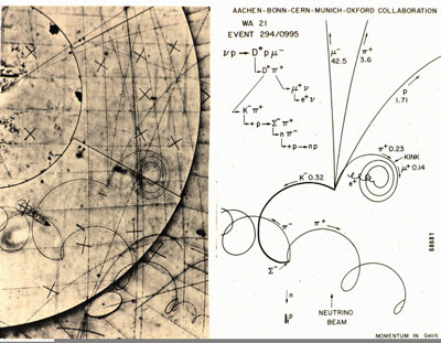 ONE is a topological union of two zero's where one zero is active - the penetrator - and the other one is a passive peak tube. The passive and active peak have each another origin, here represented by an opposite spiral motion. Since the topological penetration (pelastration) creates three membranes in this union a "space" - with three dimensions - - is created. Now the image of two separating curves may remember you to images of particle collisions in particle colliders like at Cern. See next images about the decay of some fundamental particles. | ||||||||||||||||||