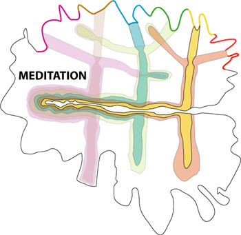 What is then MEDITATION? Real meditation is then when we exclude by focusing all sensor information (purple holons), and focus on the oscillations of the deeper layers of membrane. That makes us (as a totality) in harmonic resonance with those deeper layers and let us experience the universal vibrations (which are all the time in us).