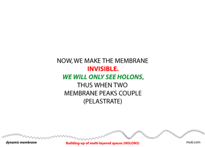 In the second animated image - where the membrane is made invisible - is illustrated how holons - like viritual particles and fundamental particles leading to atoms and molecules (all holons) will pop-up from "no-thing". However they are caused by the actions of the membrane.