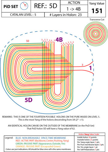 His 5D holon has 23 layers. Thus the totality becomes more rigide, and less transparent. We will say that this holon has more mass, has more weight, more color. The holon 5H has 31 layers. |
