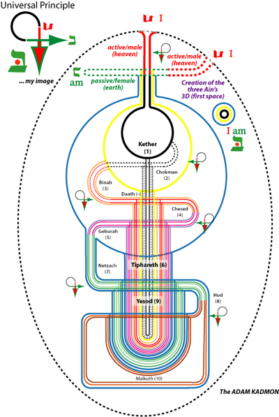 There are alternative designs possible. But all enfoldings/layerings - representing levels of increasing energy compactification - are composed and caused by the upper dynamic Membrane. In example, in next alternative design is shown how a descending "snake" creates Malkuth.