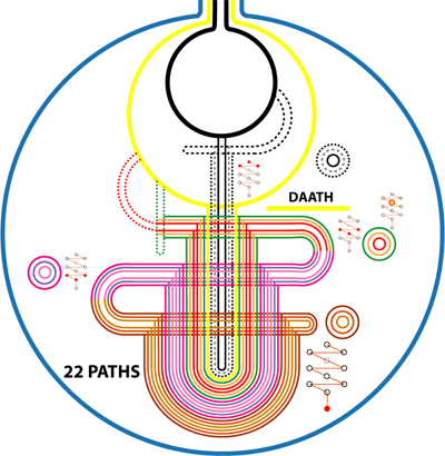 Another design - I personally prefer - is next one. It shows that Malkuth is positioned inside /centered into a womb that is made by the fermionic snake. There are 22 paths which are the merger of bosonic actions (the straight decending pillars) and the fermionic snake.