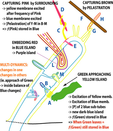 The central question is that of storage, coupling and intertwining sensed data, and self-generate tagging and priorities. Pelastration offers a mechanical approach that is based on real "mechanical contact" and will transfer (or better 'translate') information by inter-membrane layer surface contact. Since each layers inside a "HOLON" has other properties (read: amplitudes which are not sympathetic) a number of informations will not be possible to store. If the layers are although related in frequency they will oscillate and the lower (inside) layers will be excited too. The excitation of a layer may create sub-tubes which can pelastrate in a new sub-holon.