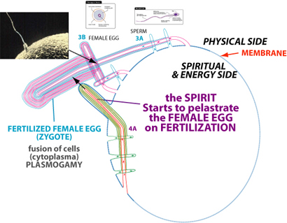 Next image shows how body and mind are coupled during the fertilization process, the Mind or Spirit pelastrates the Zygote.