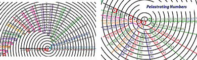 Something else: The pelastration of numbers gives also some other analytic fun when they are projected on a spiral. On level 1 (through one) with potential pelastration in next available tubes some numbers can only be reached by a pelastration through one: 2, 3, 5, 9, 17, ...