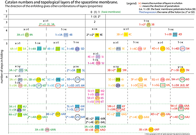 In our knowledge system it will be preferable (or more easy) to say that the numbers of layers make the correct value, independent from the number of tubes/membranes. But we know now that there is another way ... too ... on cosmological level. When we bring each catalan number to power 2 we get all pelastration combinations possible by those unique holons, on that level of generation, and this gives us all new unique combination of the next generation on which we much add the combinations of all previous generations. This giant growth of combinations explains the fantastic complexity of our worlds of interacting dimensions. And all comes from one membrane that is locally restructured by pelastrations.