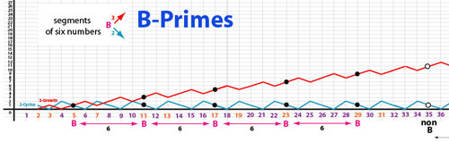 Op bepaalde punten zien wij dat er in deze cyclussen van zes GEEN priemgetal voorkomt. Dus moet daarvoor een logische reden zijn.