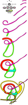 The multi-dimensional Universe consists primary of a giant basic tube or sphere made from a tensegritic membrane. The membrane is unbreakable. The membrane is almost infinite stretchable. The existence such a membrane is the only axioma of this theory. [One can question of course what made this membrane and then there are several speculations such as a type of tricoted single or double filament that is stored behind the membrane. Our goal is limited - for the moment - to show an engineering system that is simple and doesn't need a lot of postulates like QM and hundreds of exclusions.] This membrane is so flexible and elastic that it can infold by a pelastration loop or other types of pelastrations (see image below). This can happen on macro cosmos level as on micro cosmos level. A pelastration will influence locally the tension on the membrane. The giant tube - which is in essence the membrane itself - will restructure itself in many divisions and sub-divisions. We call these divisions: Islands or pellons (pelastrated holons). You can see them also as macro cosmic cigars and micro cosmic cigarillo's. ;-)