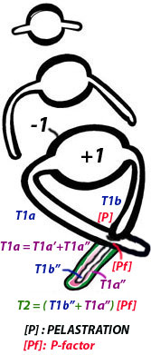 Sub-Tubes inside a Tube Zone. A Ty may encounter a Tx of such density that he splits in a number of smaller sub-tubes (Ty1, Ty2 ... Tyn) from which some may stay inside the Tx tube-zone, interacting with or influencing the internal fields. These sub-tubes may coil, pelastrate, push-a-side, bend, strangle, rotate, split, etc. each-other just like the large tubes can do. And also micro-tubes of other dimensions (tube-zones) may interact - under certain conditions - with them. And in each of those tiny sub-tunes T1 is still the center. ;-) A remark: Some people like Buckminster (him again) start(ed) in their cosmological view from specific balanced shapes, like a Duo-Tetrahedron in a vector equilibrium net. Our tubes can start on the vortex (center of the side, on the vertex - corners - the field is repulsive), going outside and/or inside, and come to identical pelastration actions. Pelastration is then more 'angle' bounded. This is here however not a point of discussion. Check out some of the paradoxes of Creation, Life and Trinity (in religions) |