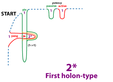 The first holons of the 2* type can combine with a yin OR a yang membrane peak to make a larger holon. This way the holons 3A-type and 3B-type are made.