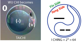 The principles of yin-yang coupling are shown in a dynamic way in next image. The image starts with a spherical membrane with two progressing peaks, both being yang. These two yang peaks are two local manifestations of the Wu Chi energy. Where Wu Chi is fundamental, these two peaks are temporary, impermanent.